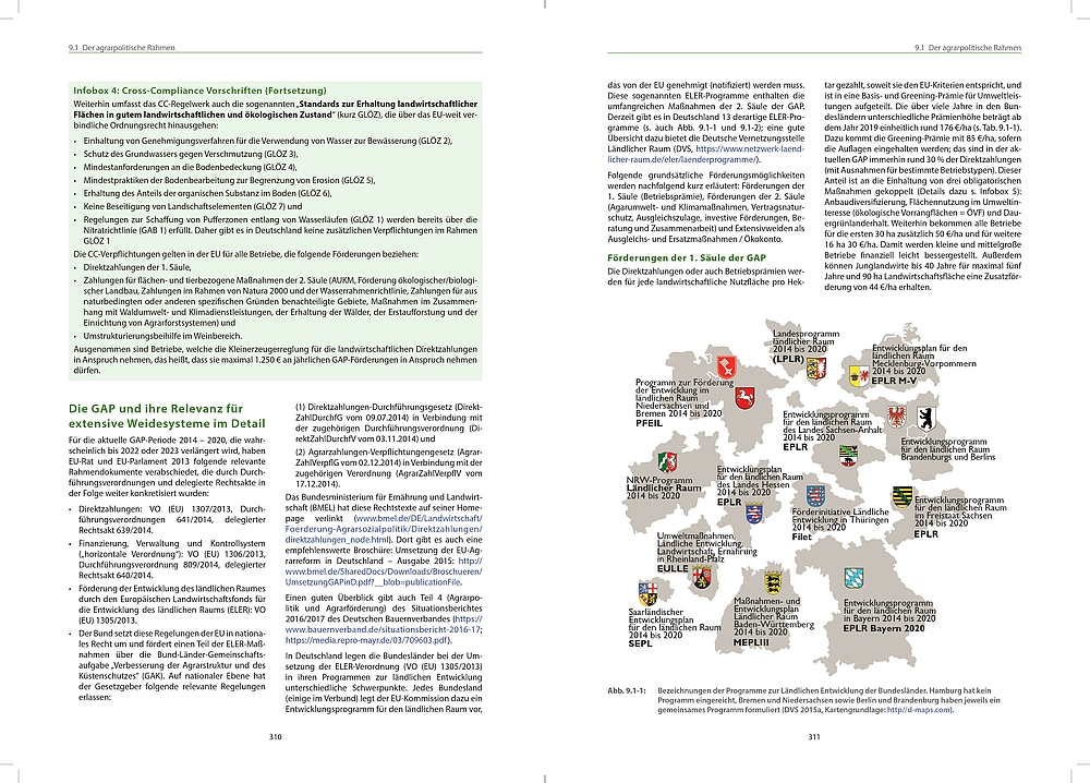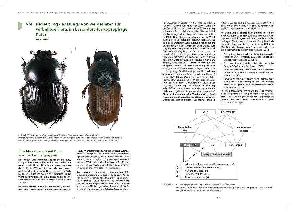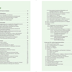Andere Kapitel beschäftigen sich mit weiteren naturschutzfachlich wertgebenden Habitaten und Artengruppen wie Quellen, Röhrichten, Kadavern, Orchideen, Zikaden und Dung sowie mit „Problempflanzen“. Politischer Rahmen und Ökonomie von naturnahen Weiden, Beziehungen zur EU-Wasserrahmenrichtlinie sowie Klimawirksamkeit und Ästhetik von Weidelandschaften werden zusätzlich thematisiert.