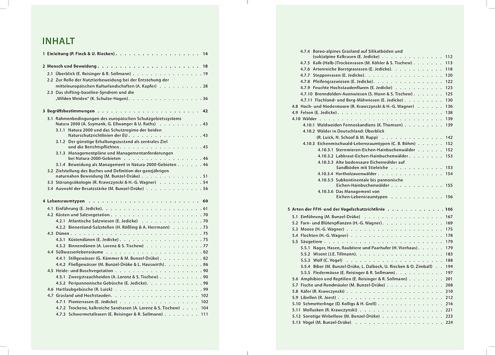 M. Bunzel-Drüke, E. Reisinger, C. Böhm, J. Buse, L. Dalbeck, G. Ellwanger, P. Finck, J. Freese, H. Grell, L. Hauswirth, A. Herrmann, A. Idel, E. Jedicke, R. Joest, G. Kämmer, A. Kapfer, M. Köhler, D. Kolligs, R. Krawczynski, A. Lorenz, R. Luick, S. Mann, H. Nickel, U. Raths, U. Riecken, N. Röder, H. Rößling, M. Rupp, N. Schoof, K. Schulze-Hagen, R. Sollmann, A. Ssymank, K. Thomsen, J.E. Tillmann, S. Tischew, H. Vierhaus, C. Vogel, H.-G. Wagner & O. Zimball
